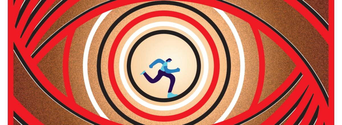 À travers son visuel, la couverture plonge le lecteur dans une atmosphère proche de celle vécue par les personnages. Elle évoque l’idée d’un regard constant, impossible à éviter, qui observe chacun en permanence. Ce sentiment de contrôle permanent influence les comportements et rappelle que, dans cet univers, rien n’échappe vraiment au pouvoir en place.