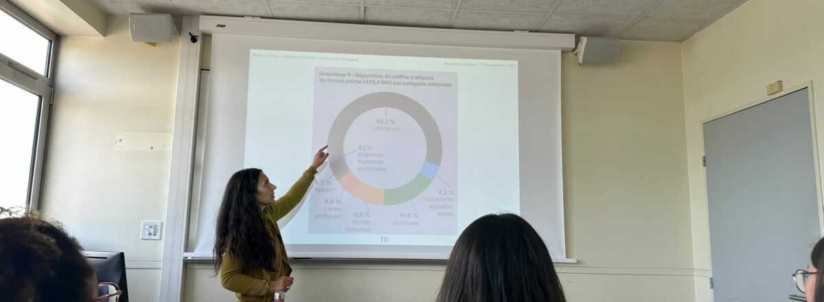 Le 23 septembre 2025, nous avons eu la chance d’accueillir Paola Grieco. Éditrice depuis dix-huit ans, dont douze passés chez Gulf Stream, elle exerce désormais en freelance. Elle est venue nous présenter le panorama de l’édition française et ses évolutions, en se basant sur le rapport du Syndicat National de l’Édition pour la saison 2024-2025.