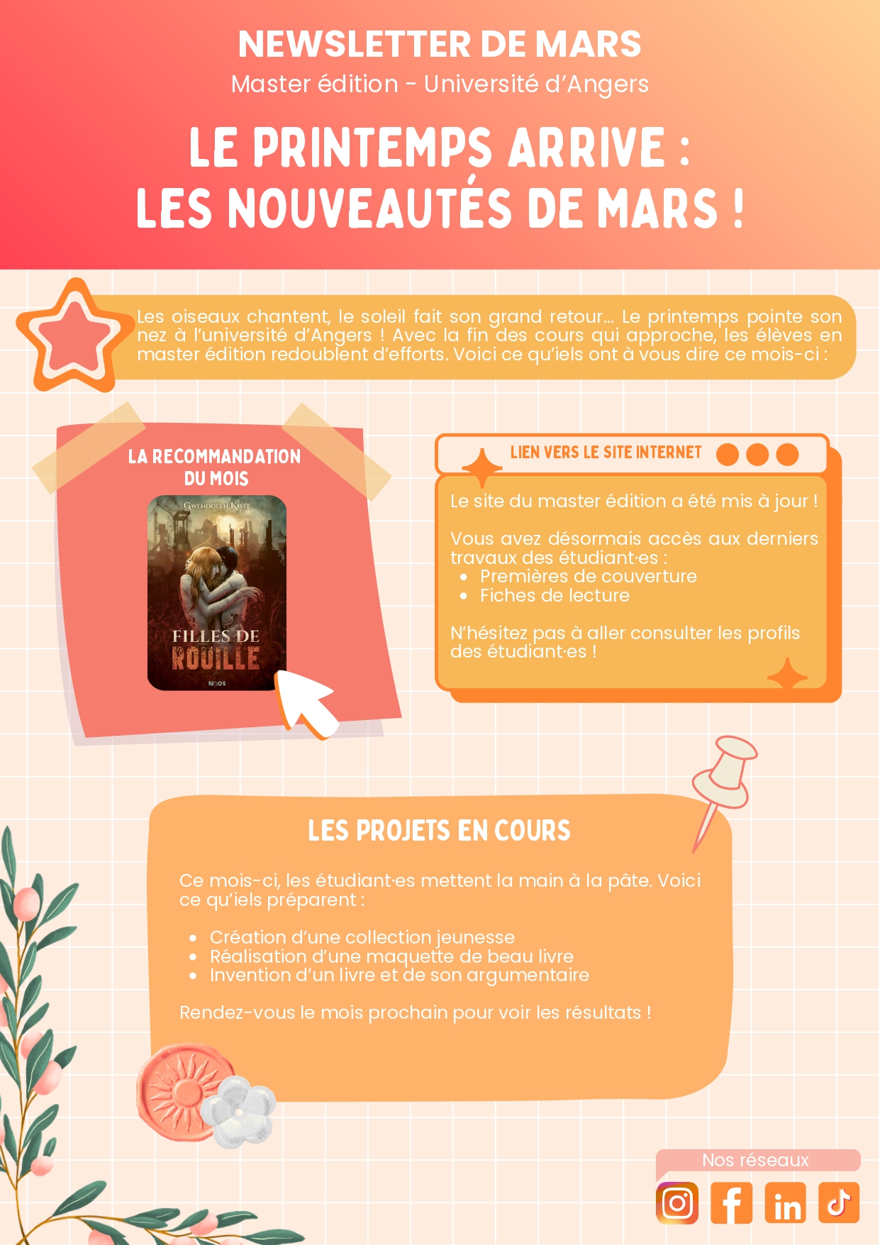 L’adresse de notre site Web est : https://masteredition-angers.fr, le site du Master Edition, Edition Multimedia et Rédaction Professionnelle de l'Université d'Angers.